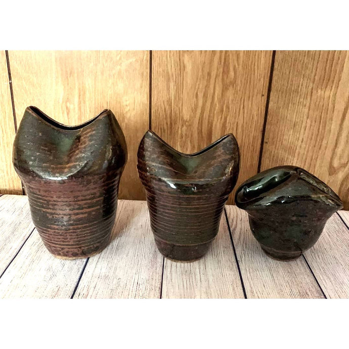 Vintage studio art mid century ceramic brown glazed stoneware vases