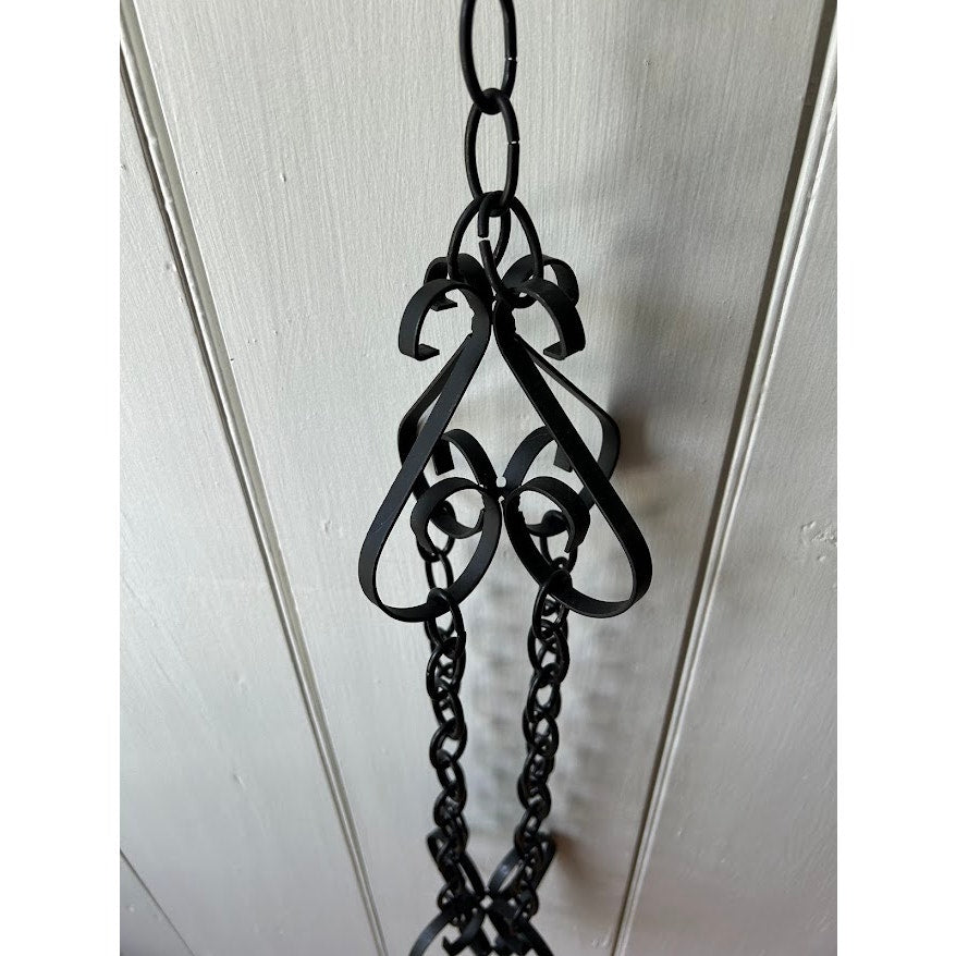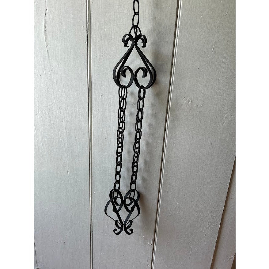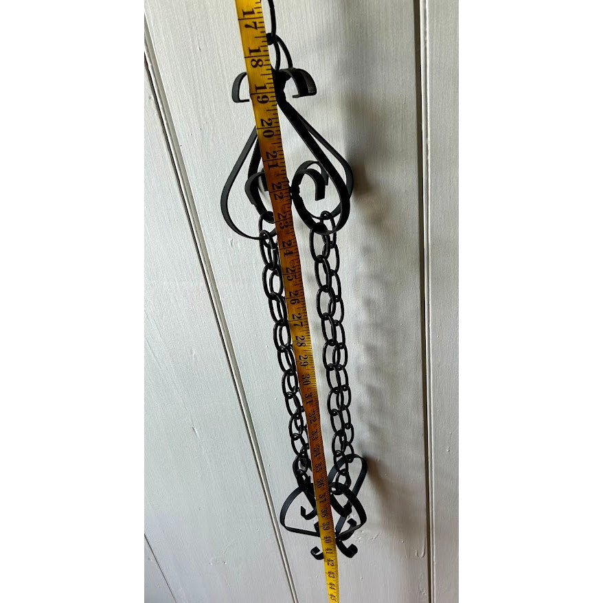 Indoor or outdoor wrought iron plant hanger // 42" long // Please see photos for details, measurements, and any minor imperfections // All items come from a smoke-free home and are sold as-is // We strive to use re-used, recycled, and biodegradable shipping supplies whenever possible